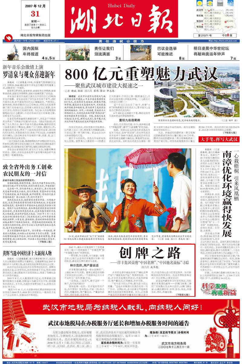 2007年,湖北洋丰集团挥下了浓墨重彩的一笔--连续摘取了“中国名牌”和“中国驰名商标”两顶桂冠。
