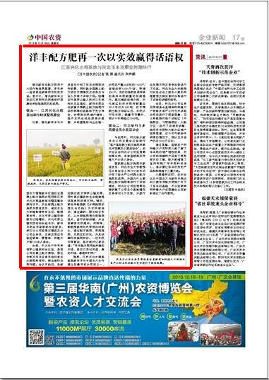 据悉,江苏兴化水稻基地是6686体育与中国农大合作建立的最早的示范田之一,示范田产量从当初的1120斤/亩增加到1320斤/亩,净增200斤。良好的施肥效果带来的是洋丰肥销量的快速提升。据石德成经理介绍,兴化地区的洋丰肥料销量在2010年仅为200吨,自开展测土配方活动以后,农民认可洋丰肥,销量节节攀升,预计今年将超过1000吨。