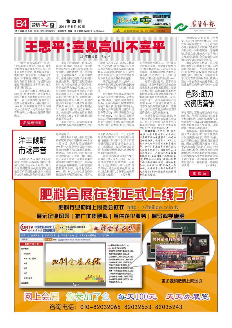 浏览量:8527  2014.11.22  关键词:《农资导报》:洋丰倾听市场声音
