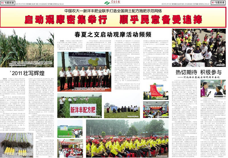 最激动人心的是在湖北沙洋、陕西武功、河南扶沟示范基地举行的三场观摩会,地方政府领导、农民朋友和经销商见证了测土配方施肥不同凡响的效果,备受鼓舞。