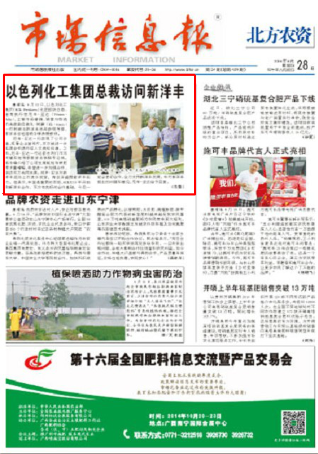 8月12日,以色列化工集团(ICL Fertilizers)化肥板块总裁、首席执行官尼辛·亚达(Nissim·Adar),主管市场营销、销售与物流的高级副总裁礼·阿蒙(Eli·Amon)一行到湖北6686体育总部参观考察,6686体育总经理杨华锋热情接待。